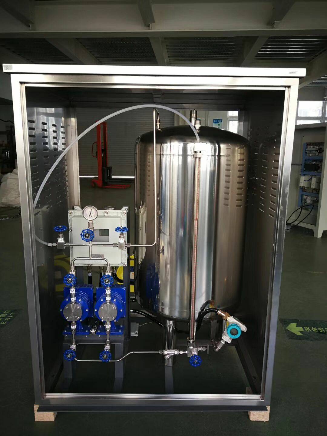 主要配置:1台防爆单片机控制器/2台防爆电磁泵/1台200L不锈钢储罐/1台设备箱/1台压力变送器