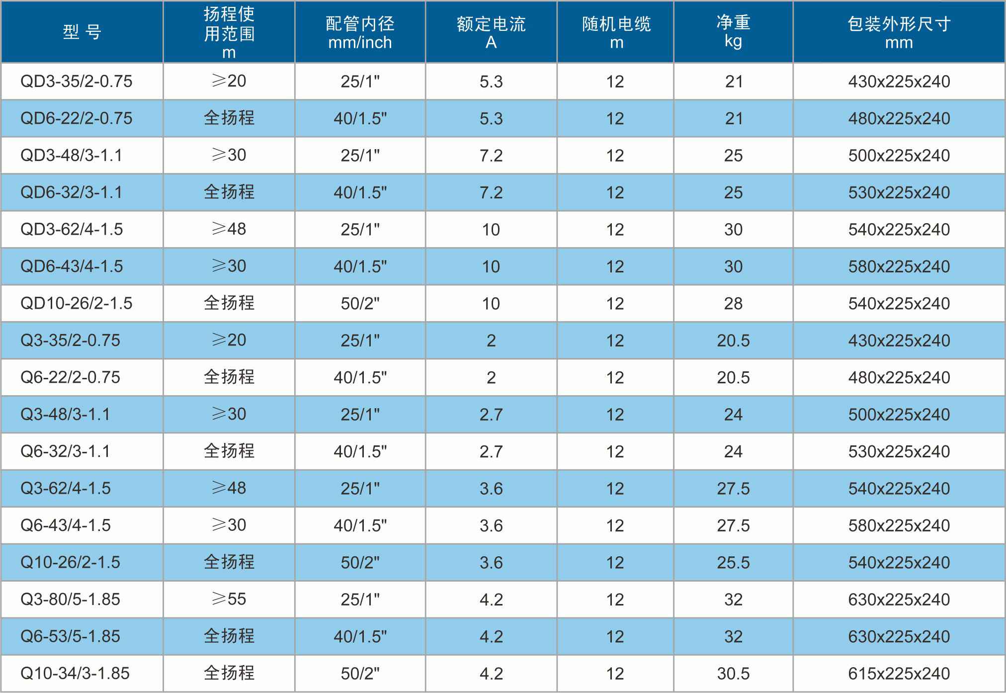 QD.Q小型多级潜水电泵由水泵、密封和电动机三部分组成,电动机位于水泵下部,为三相或单相异步电动机;水泵位于电泵上部,为多级离心式叶轮、径向导叶结构;水泵与电动机之间采用内外两道机械密封,各固定止口处采用“O”型耐油橡胶密封圈作静密封。