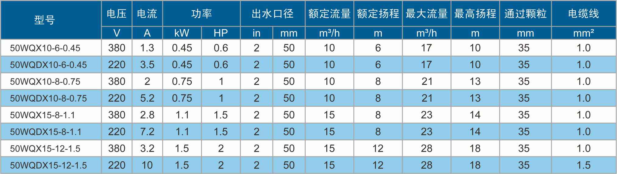 WQX旋流式潜水排污泵 0.45~1.5kW
